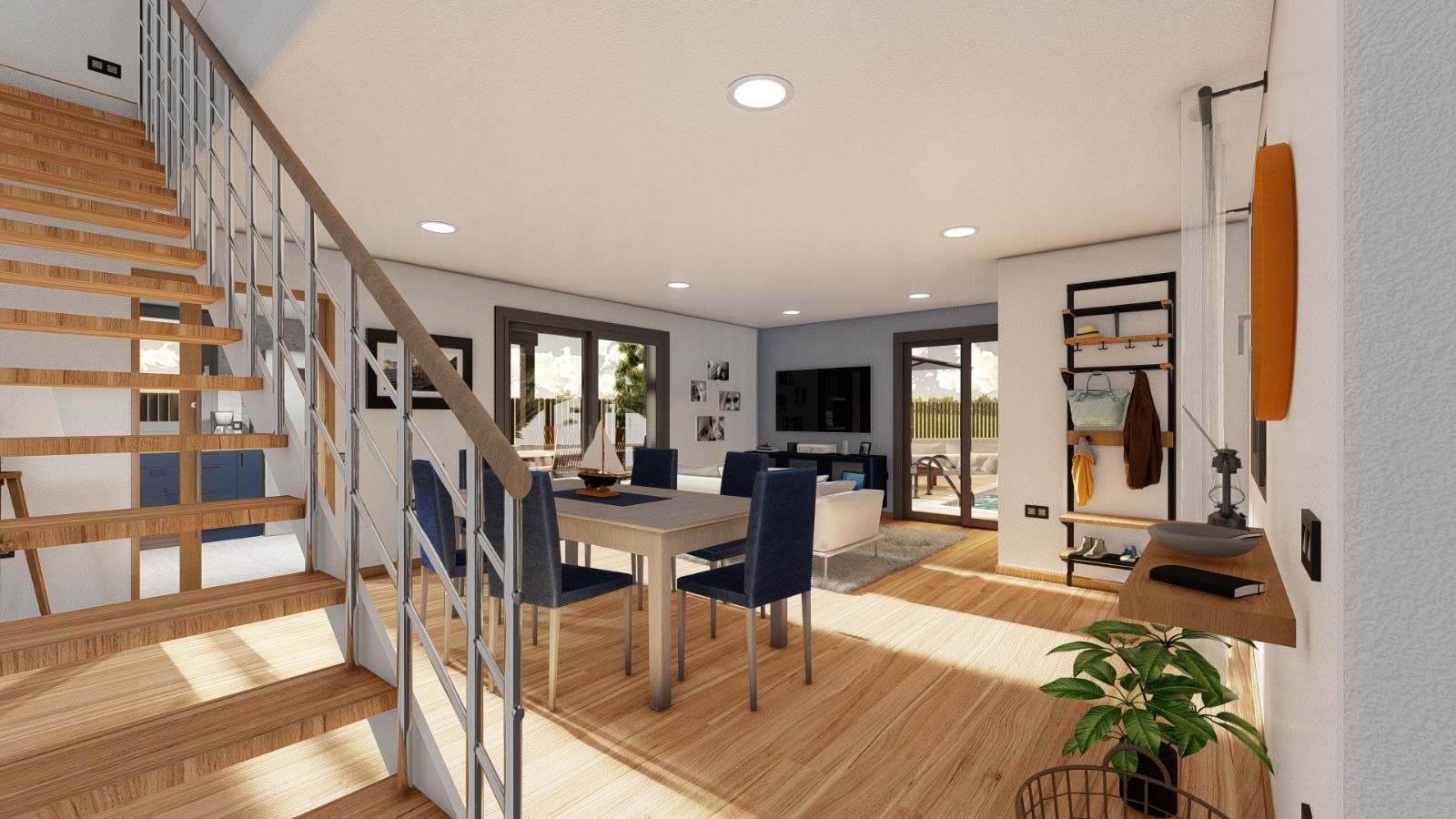 8 chalets de lujo. De los cuales 6 son pareados y 2 individuales. Todos ellos cuentan con piscina privada, terraza, garaje..